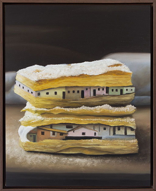 Partindo da ideia de que moradias de baixo custo são constantemente engolidas pelo corporativismo habitacional, esta obra se tornou o ponto de partida para a exposição.