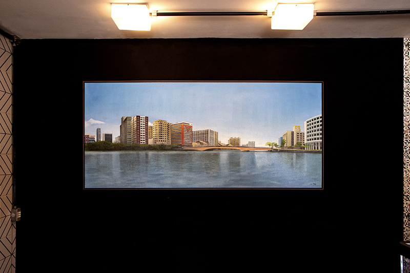A pintura contempla do Cinema São Luiz até o prédio dos Correios, passando pela Ponte Duarte Coelho.